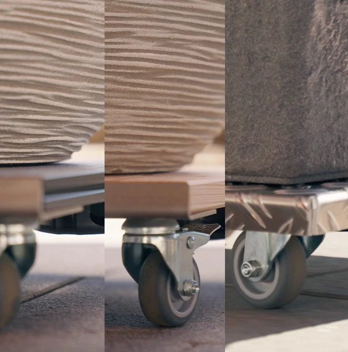 Unseren PlantMOVER gibt es in drei verschiedenen Ausführungen. Holz, WPC und Aluminium. Durch unsere hochwertigen Materialien sind unsere Roller besonders langlebig.